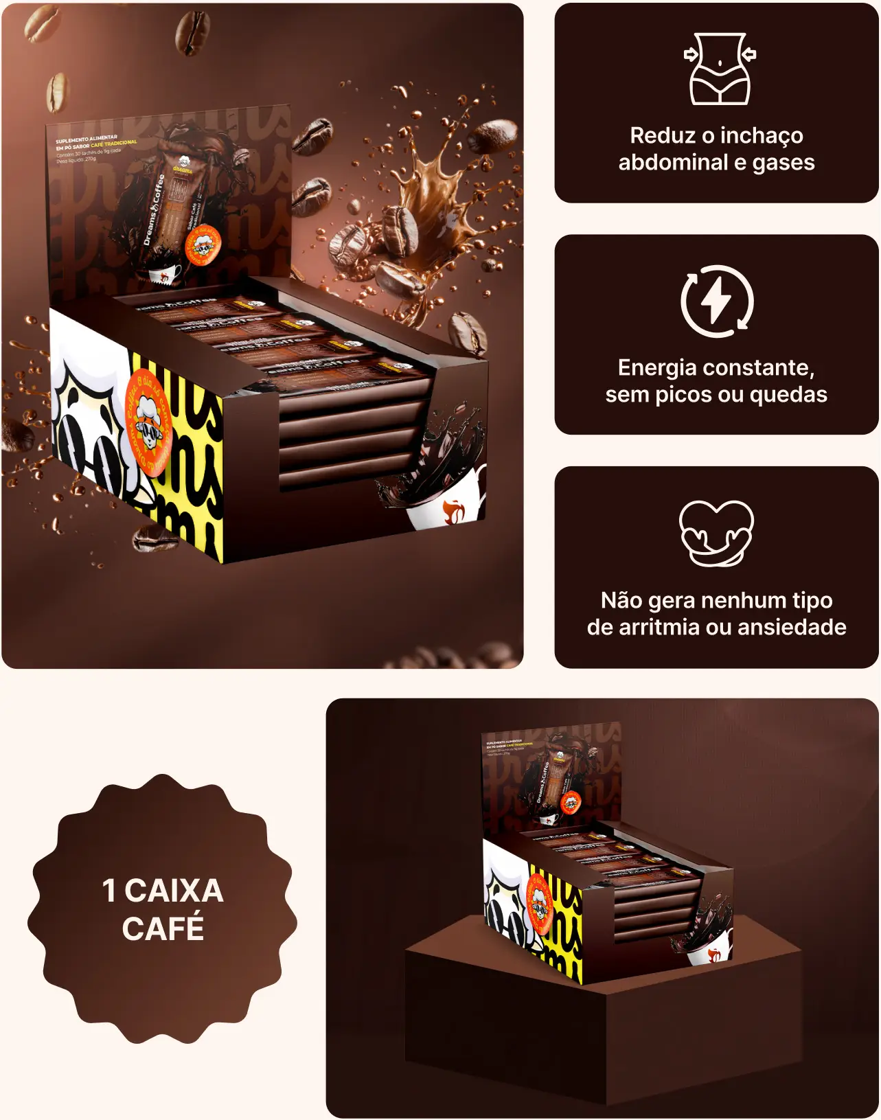 O Dreams 3.0 não é uma solução milagrosa para o emagrecimento. Ele é um café solúvel termogênico com diversas propriedades que irão potencializar seu processo de emagrecimento e também te dará mais energia e foco ao longo do seu dia.